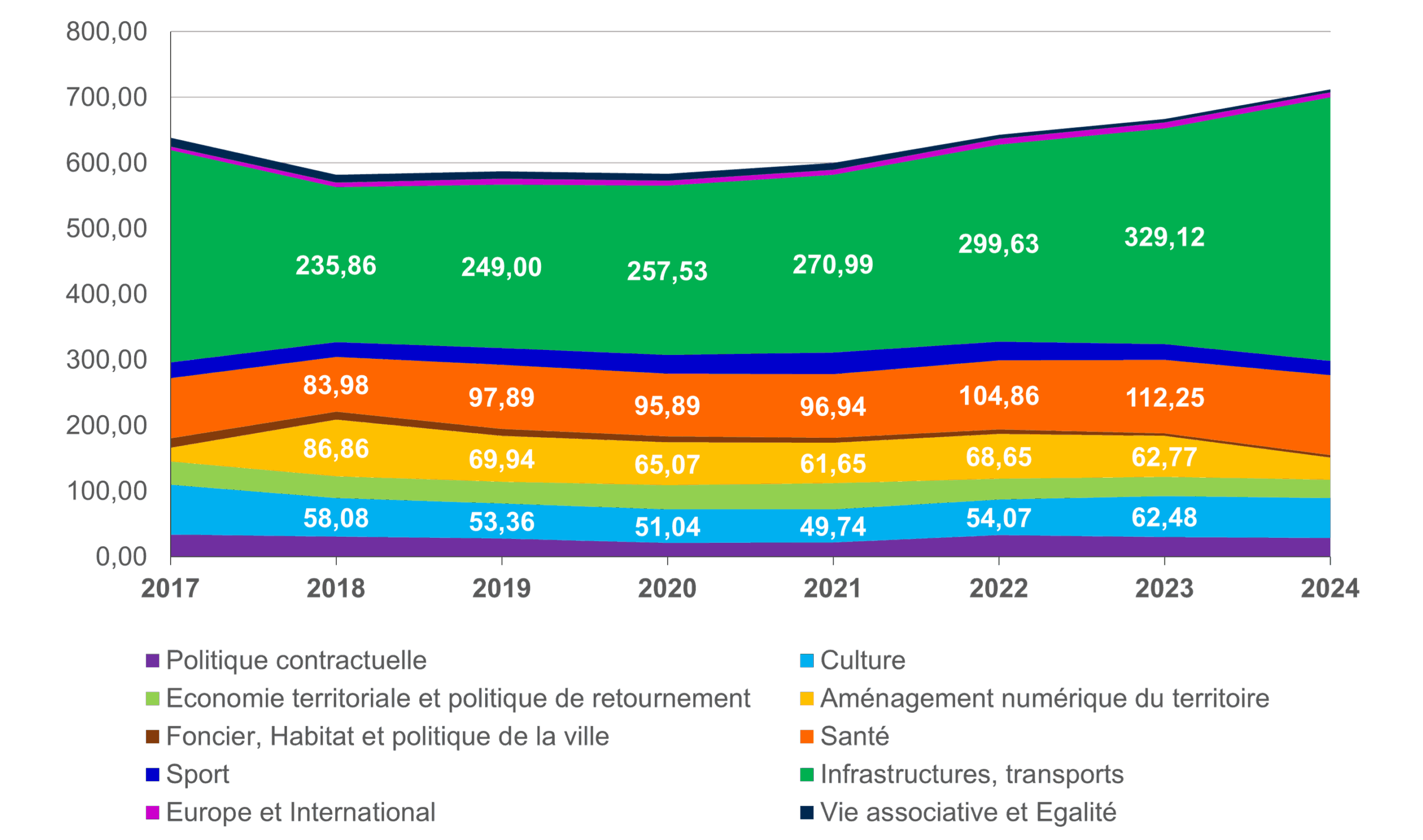 Évolution des financements depuis 2017 (en M€)